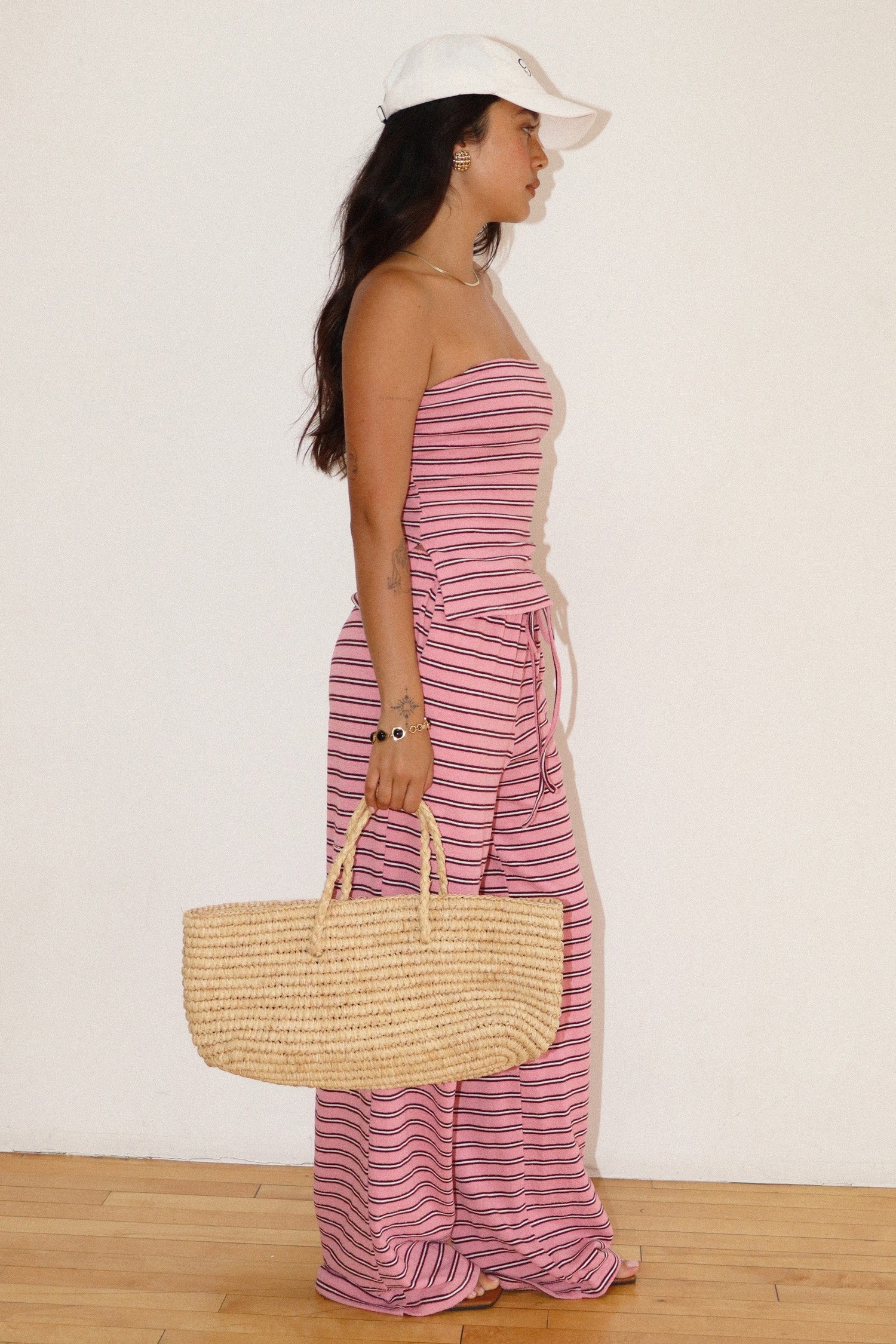 Ultra chic and ultra comfortable. These cutie striped pants feature a wide leg fit and drawstring waistband.