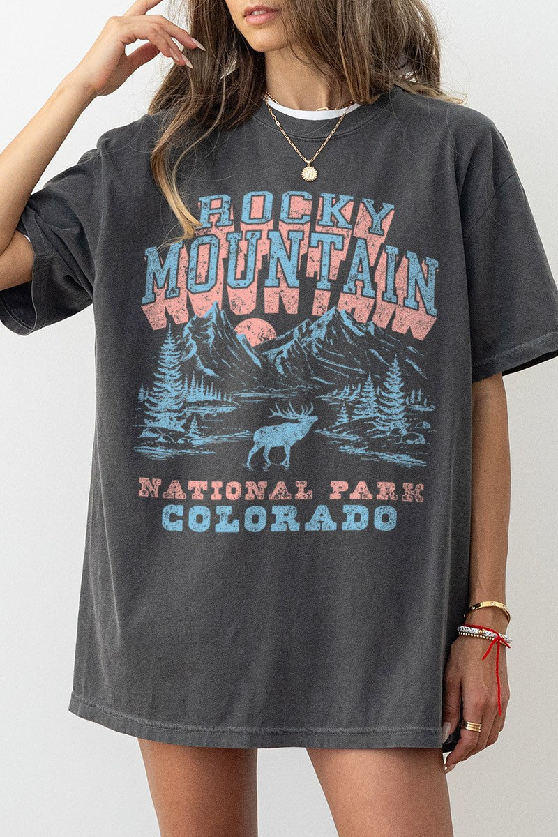 Relax Adult Fit Heavyweight Comfort Colors Crew Neck. Colorado Rocky Mountains Colorado National Park Distressed Mountains and Elk Animal Trendy Artwork Illustration Outdoors Vintage Retro T-Shirt.