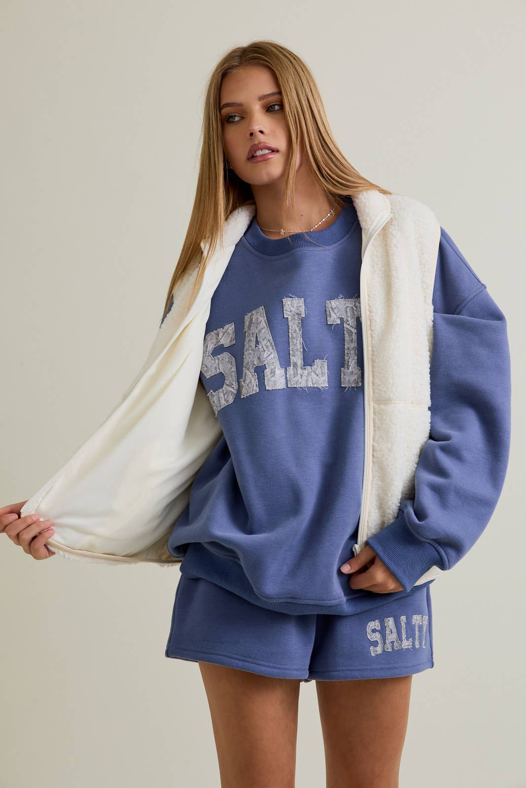 This is a mockneck zip-up vest with zip-closure hand pockets.