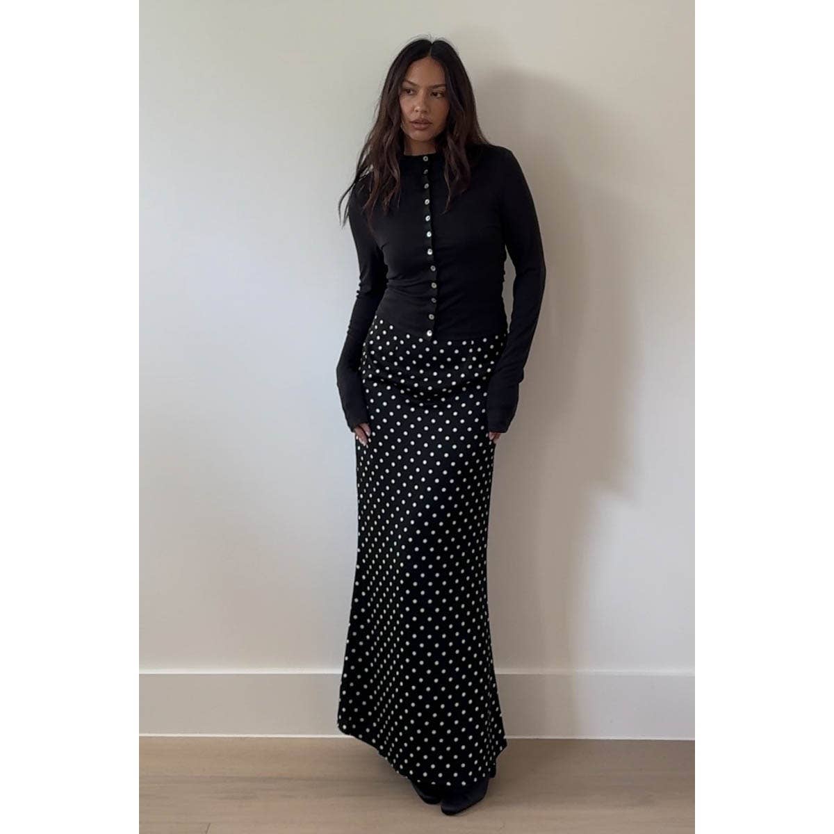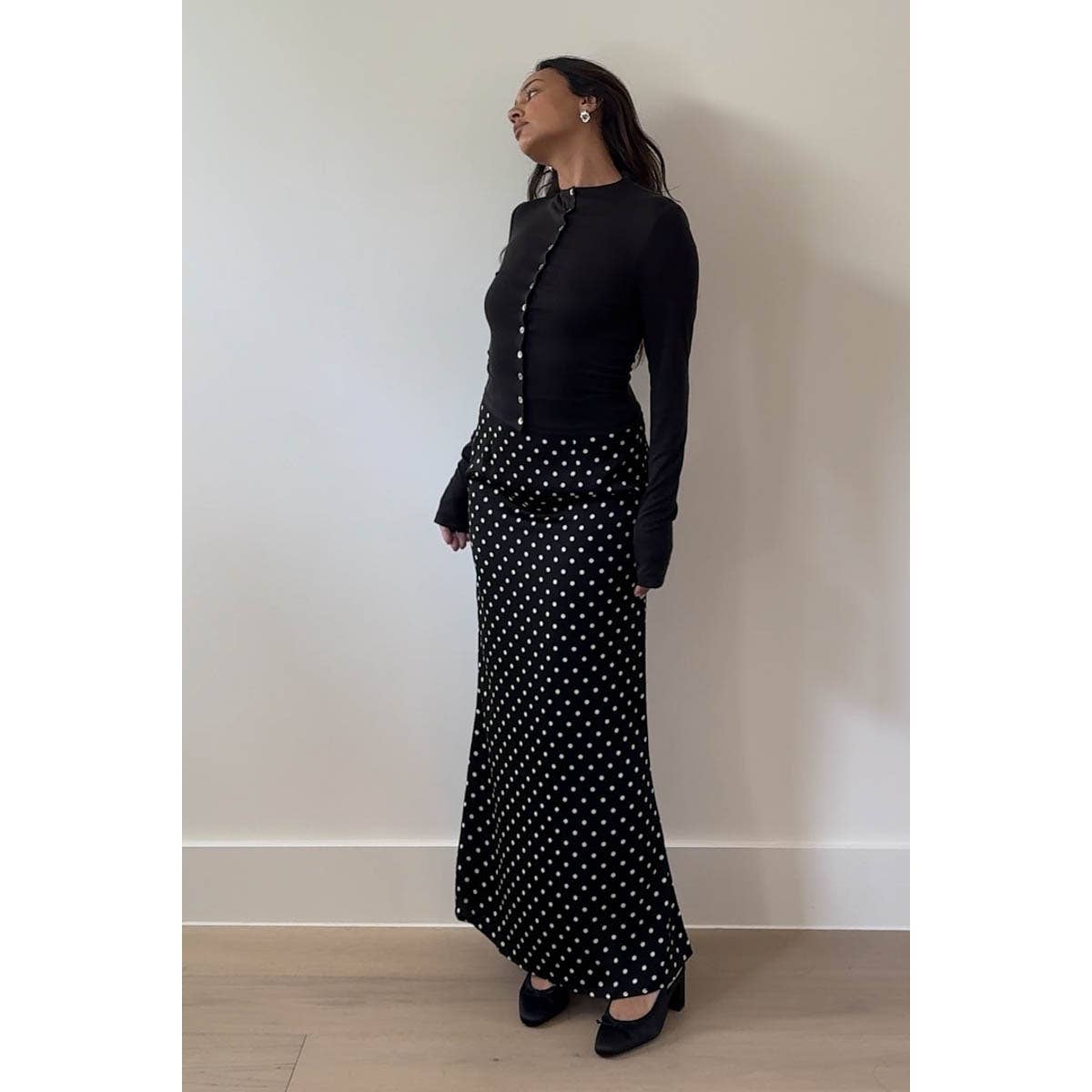 This top offers a luxuriously soft touch that feels gentle against the skin while providing just the right amount of stretch for a flattering slim fit. The mock neck design adds a touch of sophistication, while the button-up front allows for easy layering and customization of your look.